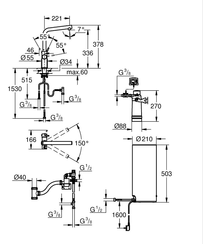 Fit the GROHE Red Duo kitchen mixer as part of your kitchen layout and notice an instant difference in ease of use. GROHE Red Duo gives you water heated to 100° at the push of a button – so no more hanging around for the kettle to boil. The boiling water is perfect for making tea and coffee, but also filling pots and preparing meals. The boiling water function is activated via the child-safe touch buttons. The high L-shaped spout makes filling pots easy, and it has a swivel range of 150° for extra flexibility. GROHE SilkMove ensures smooth, precise lever operation. Safety is paramount with this product – the mixer features an automatic, illuminated GROHE ChildLock function operated via the touch buttons. Rated A for energy efficiency, the boiler can also be switched to Holiday Mode, where the temperature is limited to 60° C. Instantly providing up to 5.5L of boiling water, the boiler is made of titanium for excellent corrosion protection and the tap’s dazzling, durable GROHE StarLight chrome finish will stay pristine for years to come. The GROHE Red filter also reduces limescale and heavy metals in the water, prolonging the life of both tap and boiler. Customers may want to also purchase the Coldfill Mixing Valve (40841001) to replace your kitchen tap for open water heaters, which mixes mains water with boiling water to give you warm water immediately too, meaning no waiting for water to heat up, and less water wasted.